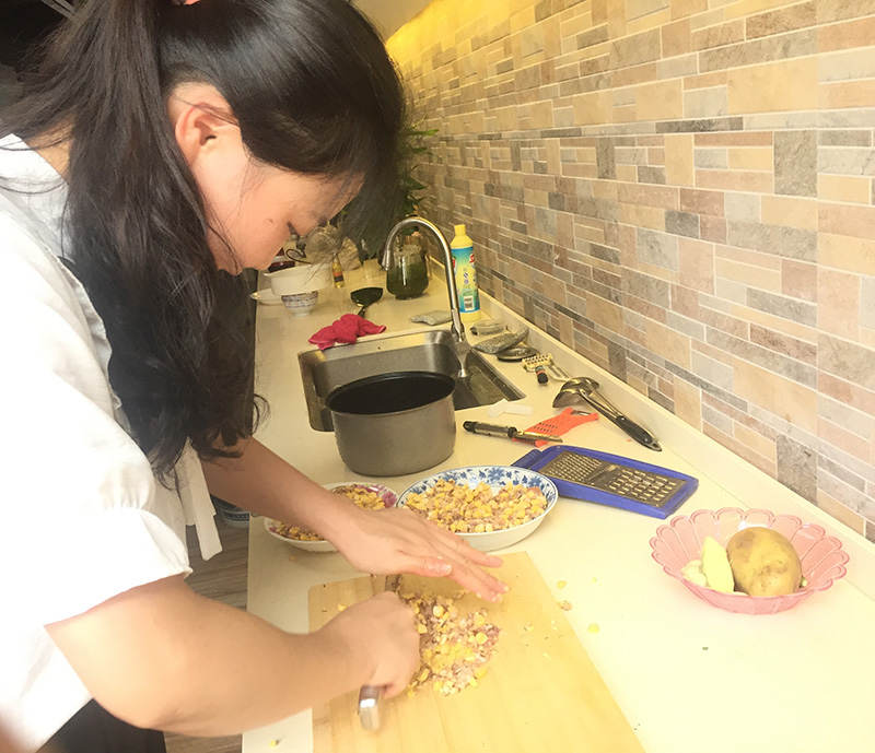 兼職包餃子和全場(chǎng)餡料的主刀師夢(mèng)渝