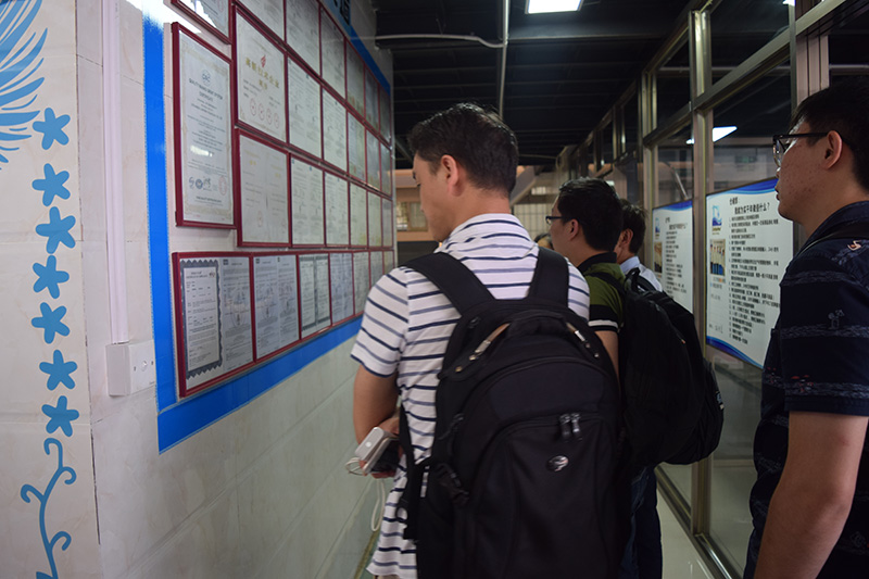 我司領(lǐng)導(dǎo)帶領(lǐng)客戶瀏覽我司環(huán)境與資質(zhì)墻